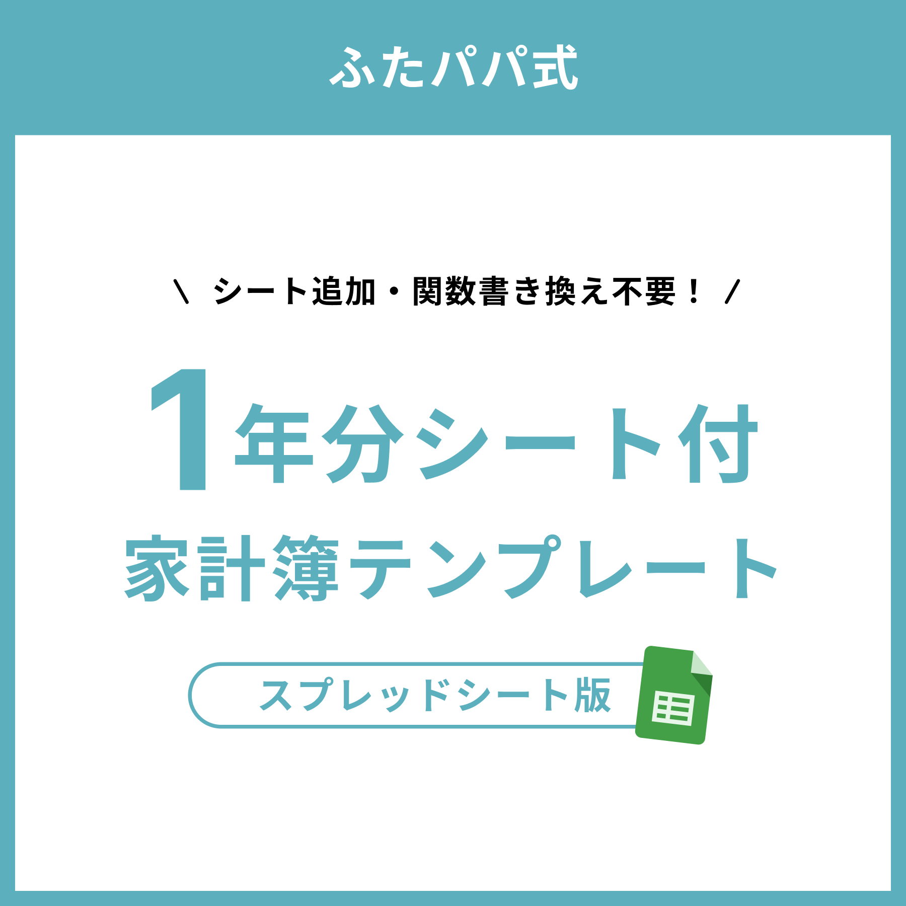 本商品は、「【ふたパパ式】スプレッドシート家計簿」の「1年分の支出入力シート&集計シート付き」商品です。